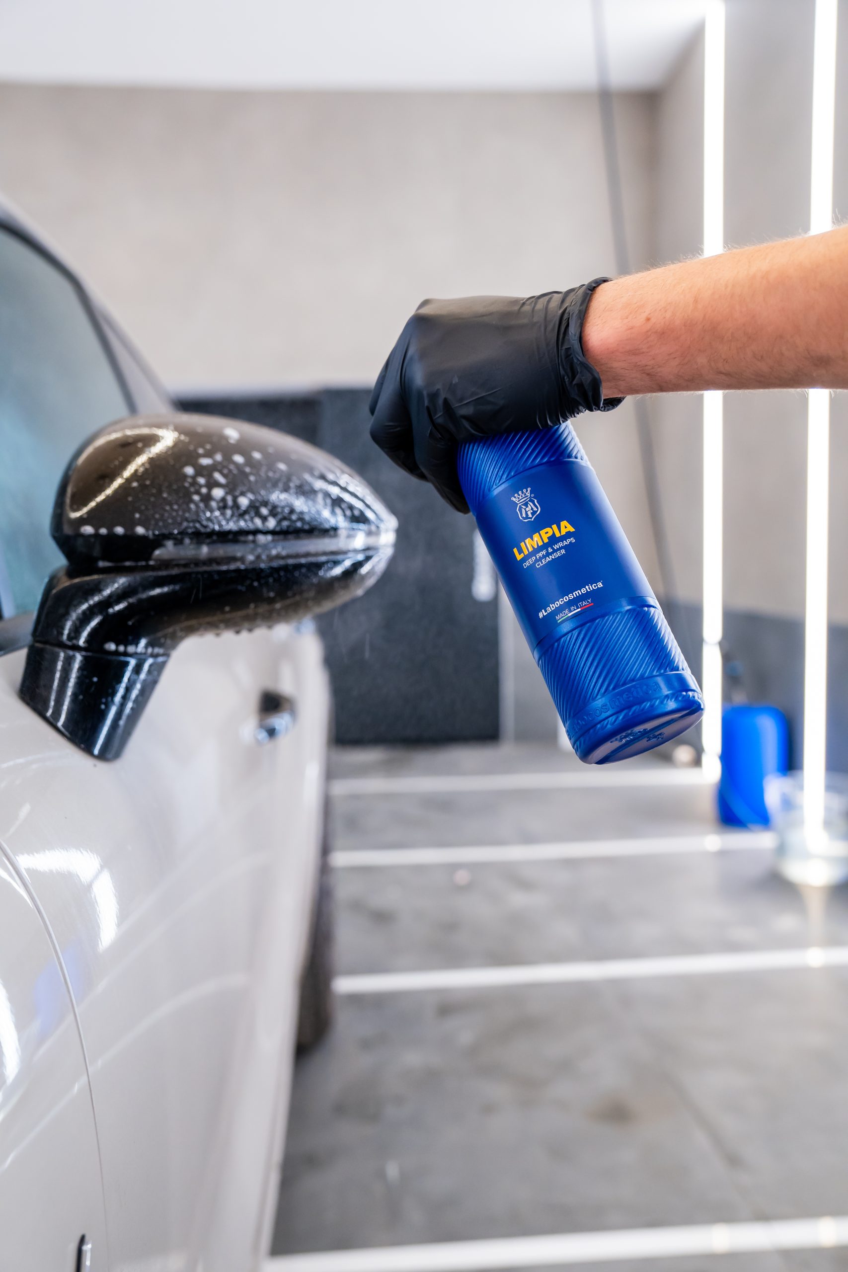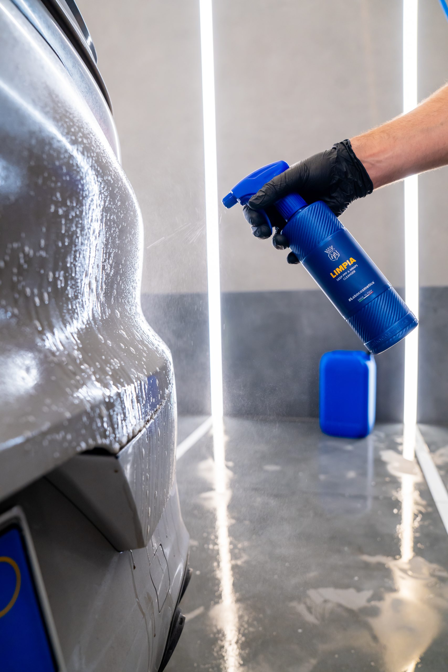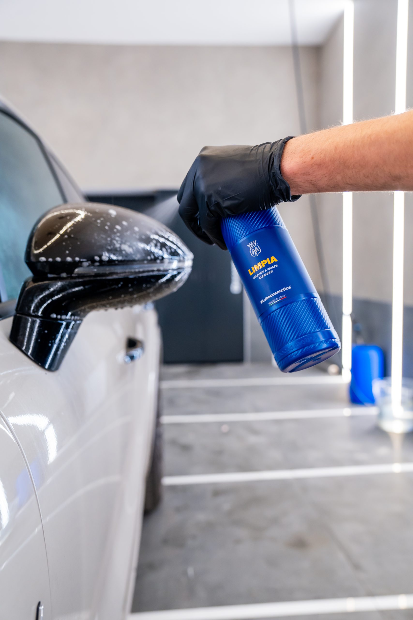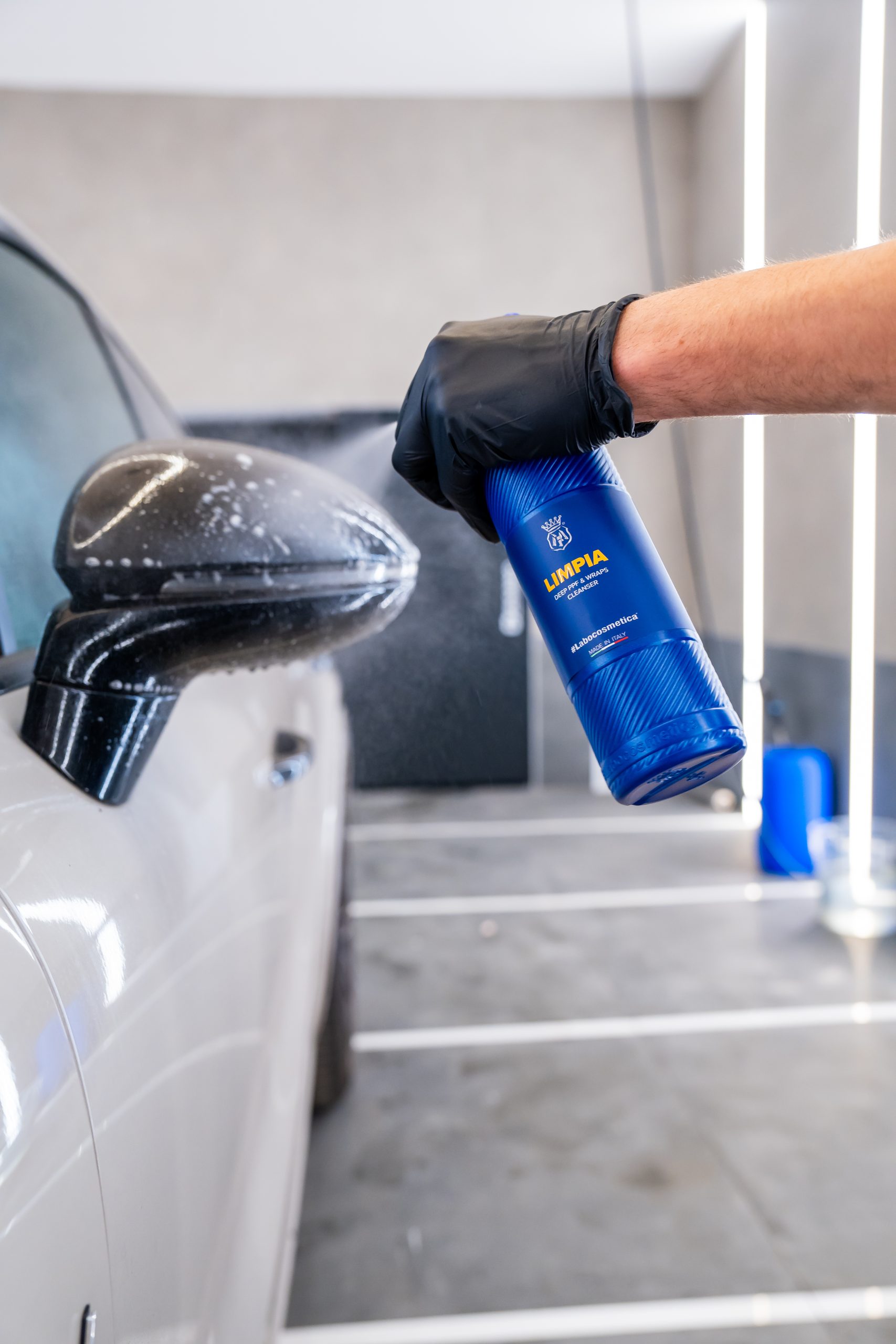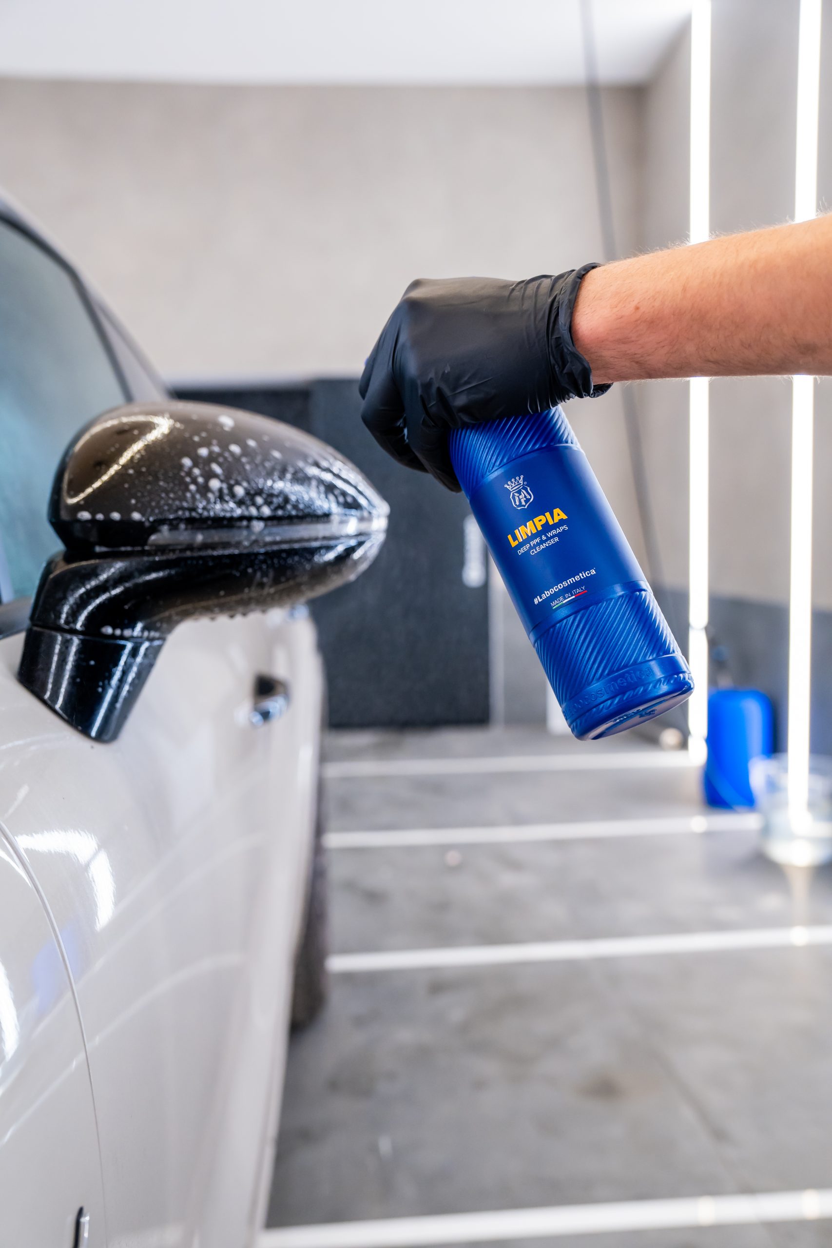 LIMPIA was created to work in depth, penetrating the pores of the film to effectively remove embedded dirt without altering its chemical-physical structure. Its formula is inspired by the logic of professional cosmetics: it works like a “technical cleansing milk”, able to preserve the elasticity, top coat, and regenerative capacity of the PPF, without weighing down or stressing the surface.