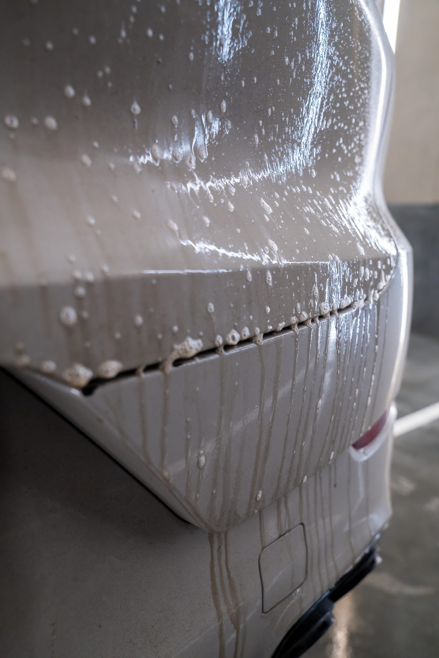 It works through capillarity, in complete absence of aggressive elements, without abrasives, solvents, or harsh surfactants, dissolving and lifting deep contaminants through a gentle yet effective mechanism. It does not alter protectants, does not attack the surface, and does not stress the material.