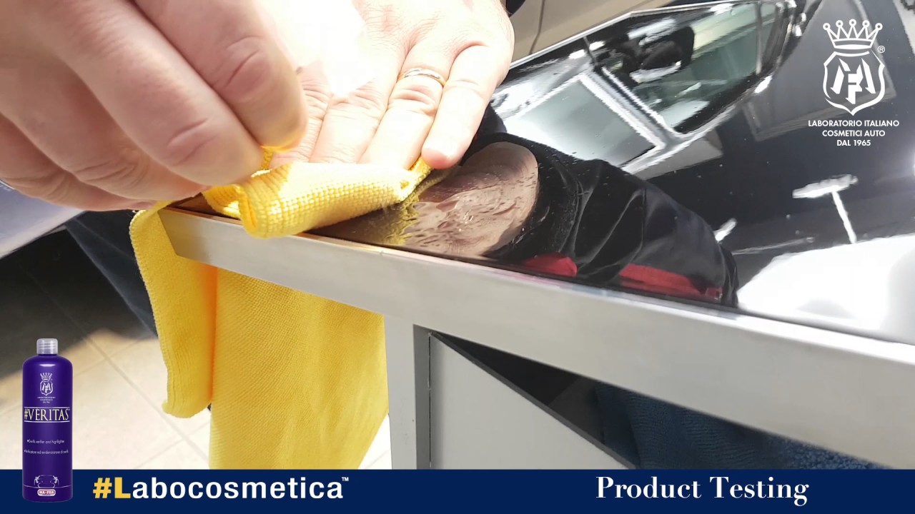 But #VÈRITAS is much more: it provides help to detailers during application of the coating: if any halos have been created in the first hour after application of the coating, it can be reworked without removing it, using a microsuede cloth soaked with the product to smooth out the error. Thanks to its specific formula, it may also be used in an innovative way,as check control of the coating life during the washing stage: many shampoos, in fact, leave micro residues of surfactants that do not allow the coating to manifest itself and might cause the detailer to err, as it might wrongfully think that the coating has disappeared.